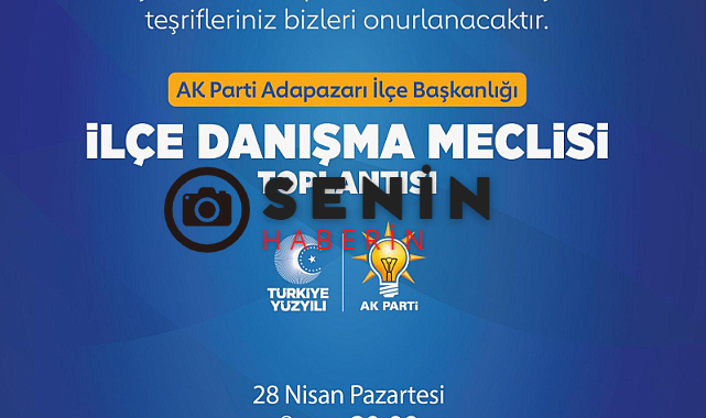 Bugün Saat 20 de 66 sı Düzenlenecek olan Adapazarı Danışma toplantısı Adapazarı Orhan gazi Kültür Merkezinde Yapılacak.Büyük katılım beklenilen toplantıda Adapazarı İlçe Teşkilatı yapacakları Sunumlarla fikir ve düşüncelerini Üyelerine Anlatacak.