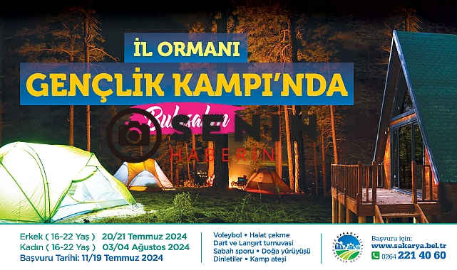 Büyükşehir Belediyesi’nin yaz etkinlikleri kapsamında Sakarya’nın gençleri, İl Ormanı’nda düzenlenecek “İl Ormanı Gençlik Kampı” programında misafir edilecek. Kampta voleybol, halat çekme, dart, langırt turnuvaları, doğa yürüyüşü, dinletiler ve kamp ateşi etkinlikleri yapılacak. Etkinliğe başvurular 11-19 Temmuz tarihleri arasında sakarya.bel.tr üzerinden yapılacak.
