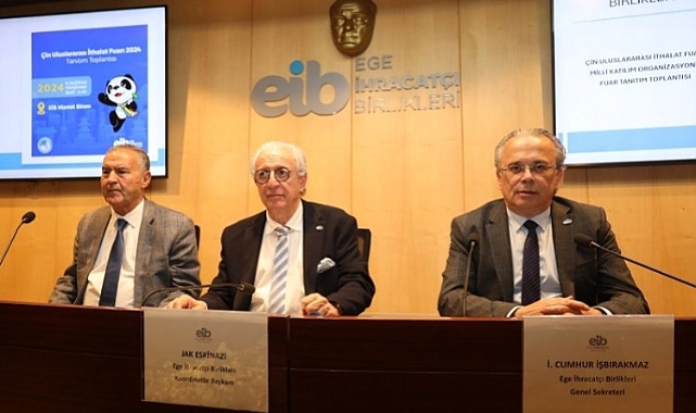 Çin Uluslararası İthalat Fuarı 2024 (CIIE) Fuarı’nın Tanıtım Toplantısı Ege İhracatçı Birlikleri Koordinatör Başkanı Jak Eskinazi ve Ege İhracatçı Birlikleri Sürdürülebilirlik ve Organik Ürünler Koordinatörü Ege Kuru Meyve ve Mamulleri İhracatçıları Birliği Başkanı Mehmet Ali Işık, Ege İhracatçı Birlikleri Genel Sekreteri İ. Cumhur İşbırakmaz’ın katılımıyla gerçekleştirildi..