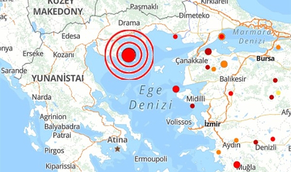 Boğaziçi Üniversitesi Kandilli Rasathanesi ve deprem Araştırma Enstitüsü (KRDAE) verilerine göre, saat 16:24'te Yunanistan'da meydana gelen deprem yerin 3.6 kilometre derinliğinde gerçekleşti.Depremin şiddeti, 4.0 olarak ölçüldü. Hibya Haber Ajansı